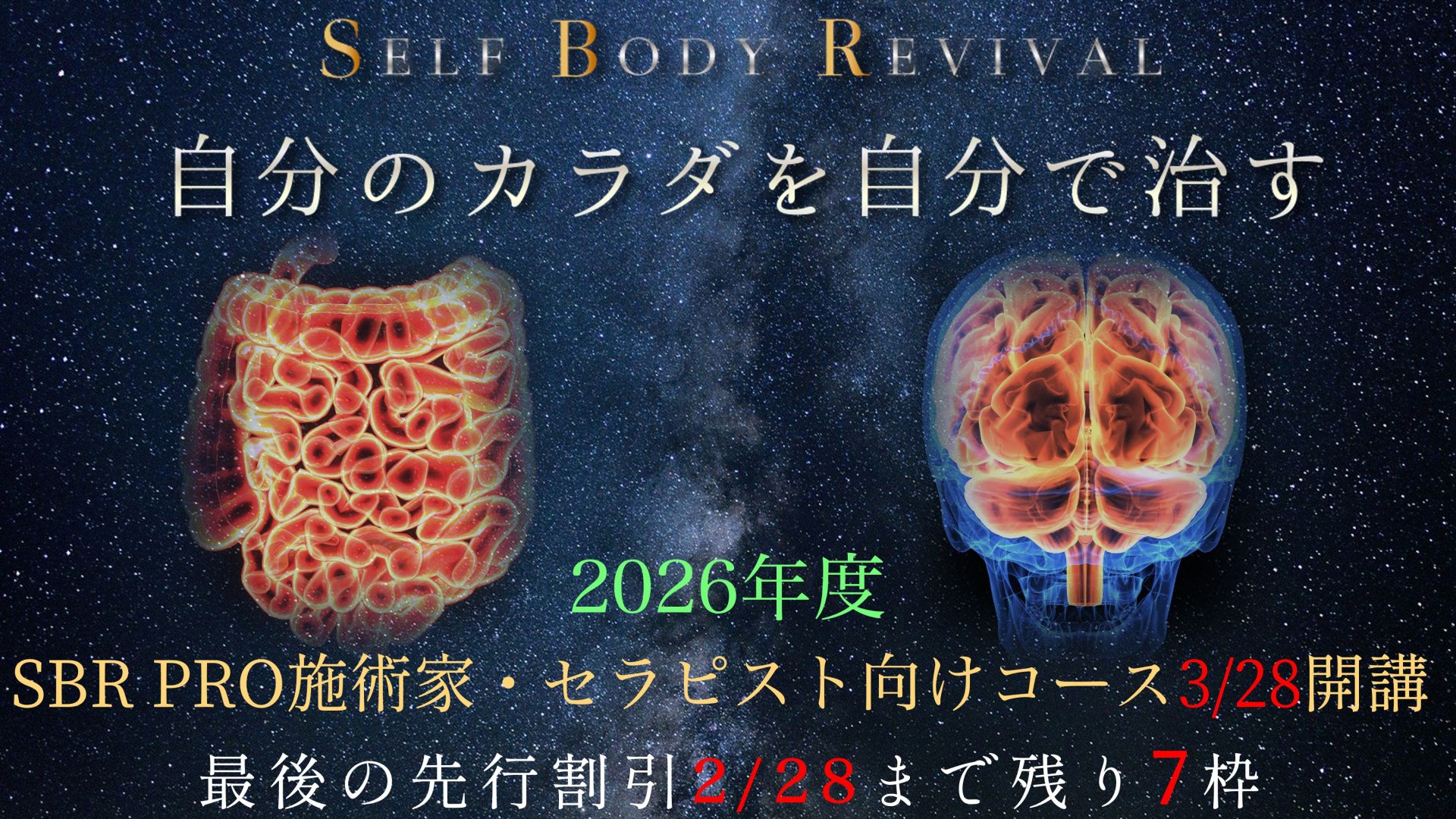 当オンラインコースで公開している「自分で自分を治す」術をより深く学び、家族やクライアントにも伝えられるよう体系的に身につけるSBR PRO講座